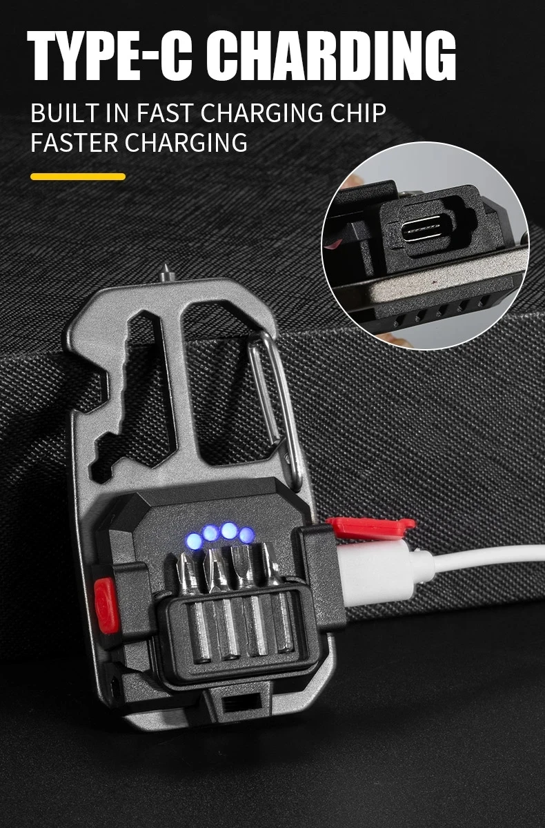 Mini Multifunctional Keychain LED Flashlight USB Rechargeable Portable Flashlight Outdoor Camping Torch Emergency Lantern 500Mah